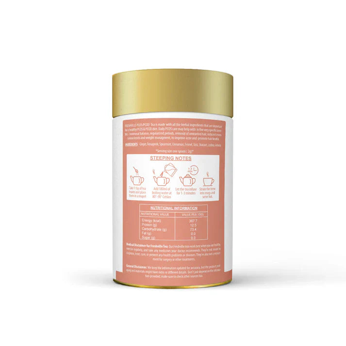 Support your hormonal health naturally with Freshville PCOS & PCOD Tea. Crafted with a unique blend of Ginger, Fenugreek, Spearmint, Cinnamon, Fennel, Tulsi, Lodhra, and Ashoka, this caffeine-free herbal tea is designed to help regulate menstrual cycles, balance hormones, and ease common symptoms of PCOS/PCOD. Rich in antioxidants and natural compounds, it also supports weight management, clearer skin, and overall well-being.