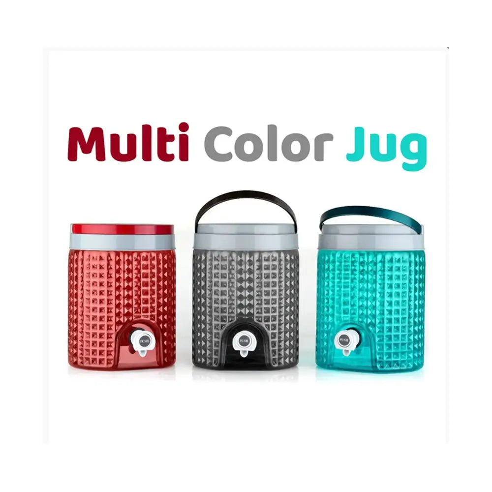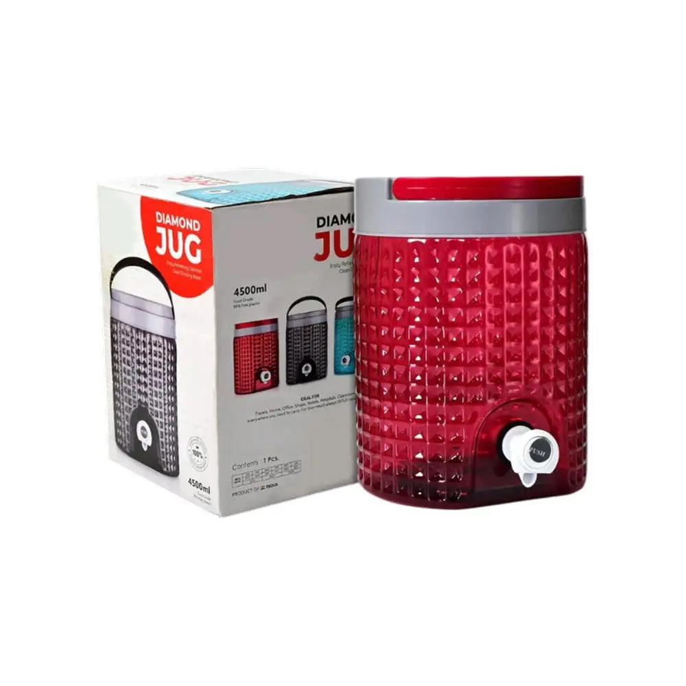 The HOME LANE Diamond Cut Water Jug combines style with functionality, featuring a 4.5 L capacity and a creative diamond-cut design that enhances its appearance. Made from durable plastic, it comes with a push nozzle button at the bottom for easy water dispensing and a sturdy base for stability. Its ergonomic handle ensures comfortable lifting, making it perfect for home use, picnics, or catered events.