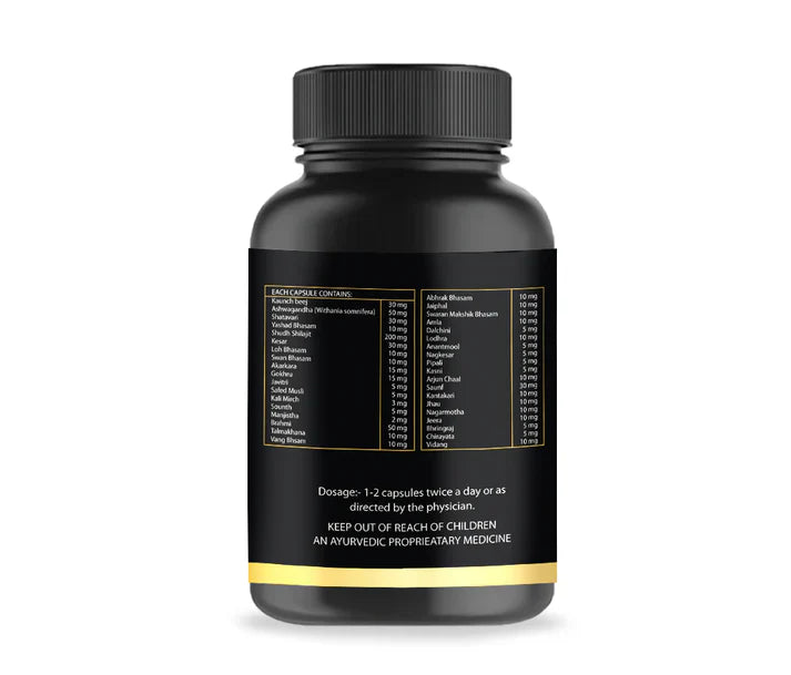 • Key Ingredients: Ashwagandha, Shatavari, Kaunch Beej, Gokhru, and 16+ other herbs