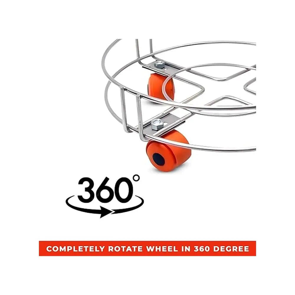 The TINUMS Cylinder Trolley with Wheels is a durable and lightweight stainless steel trolley designed for easy transportation of LPG gas cylinders. Equipped with sturdy wheels, it allows effortless movement and secure placement of cylinders. Its round design supports the cylinder perfectly, while the high-quality stainless steel construction ensures long-lasting strength and resistance to rust or corrosion.