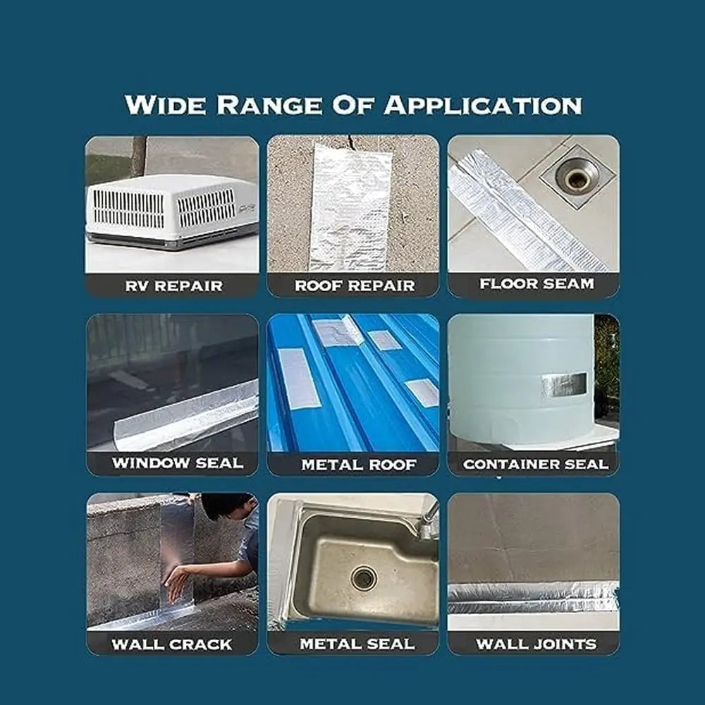 Seal leaks instantly with the TINUMS Waterproof Tape, engineered for strong adhesion and long-lasting protection. Made with a durable aluminum foil outer layer and a high-polymer butyl rubber adhesive, this tape provides an airtight and waterproof barrier for roofs, gutters, pipes, and more.