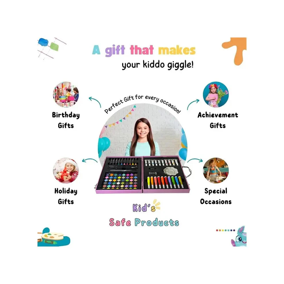 Spark creativity with the VARKAUS Space Themed Drawing & Coloring Set. This fun and inspiring 128-piece art suitcase comes packed with everything kids need to explore their artistic side—markers, crayons, colored pencils, watercolor cakes, and more. Designed in a unique space-themed case, it’s both stylish and practical, making art time exciting whether at home, school, or on the go.